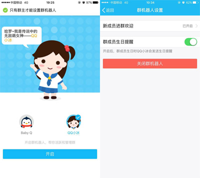 另外有个奇怪的地方,笔者手中的几个群,有的开启群机器人直接是QQ小冰,而有的则是Baby Q角色,而且暂时没有办法切换,不得不吐槽一句,QQ你还没有弄好就上线这个功能也太着急了吧。